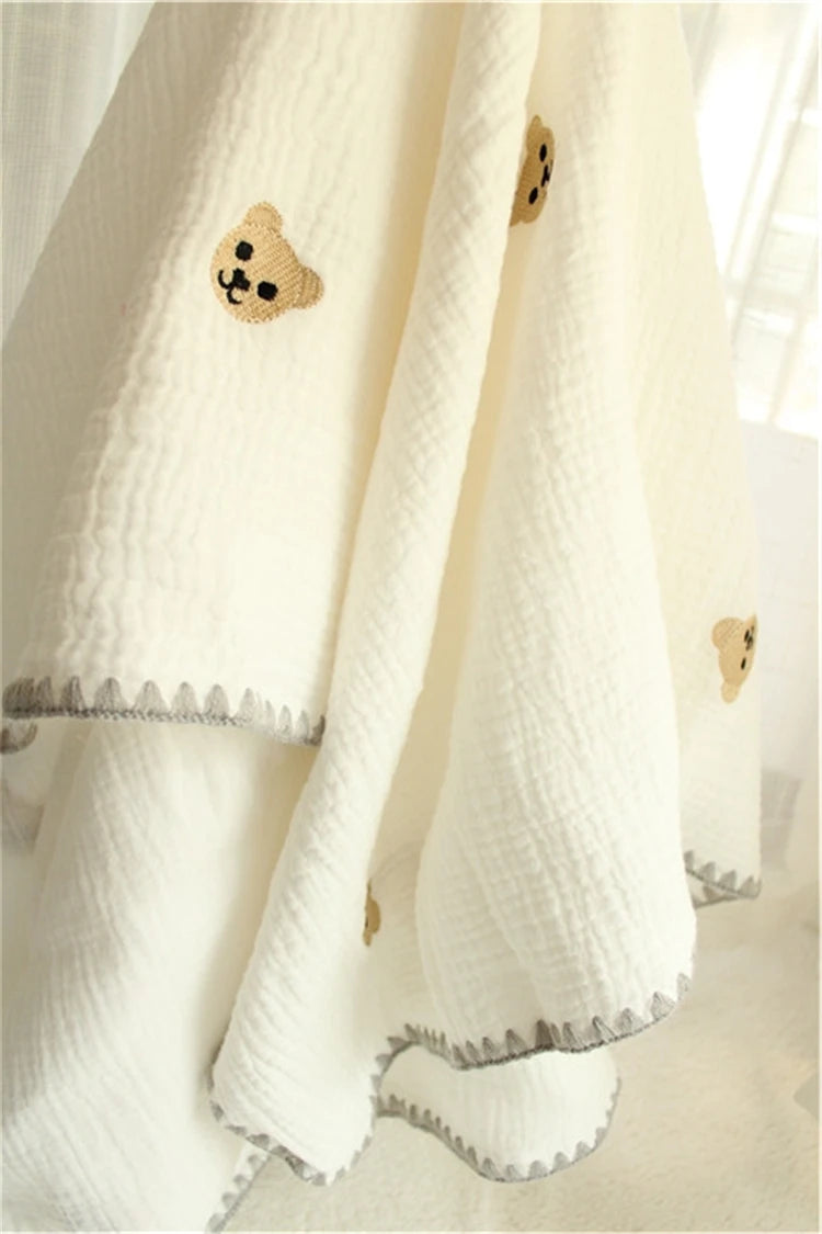 Give your baby comfort, softness, and breathable warmth with this 4-layer muslin cotton baby blanket, crafted from 100% skin-friendly cotton. Featuring a fluffy bubble muslin texture, this blanket is more breathable, more absorbent, and softer than standard muslin cloth—perfect for babies from 0 to under 3 years.