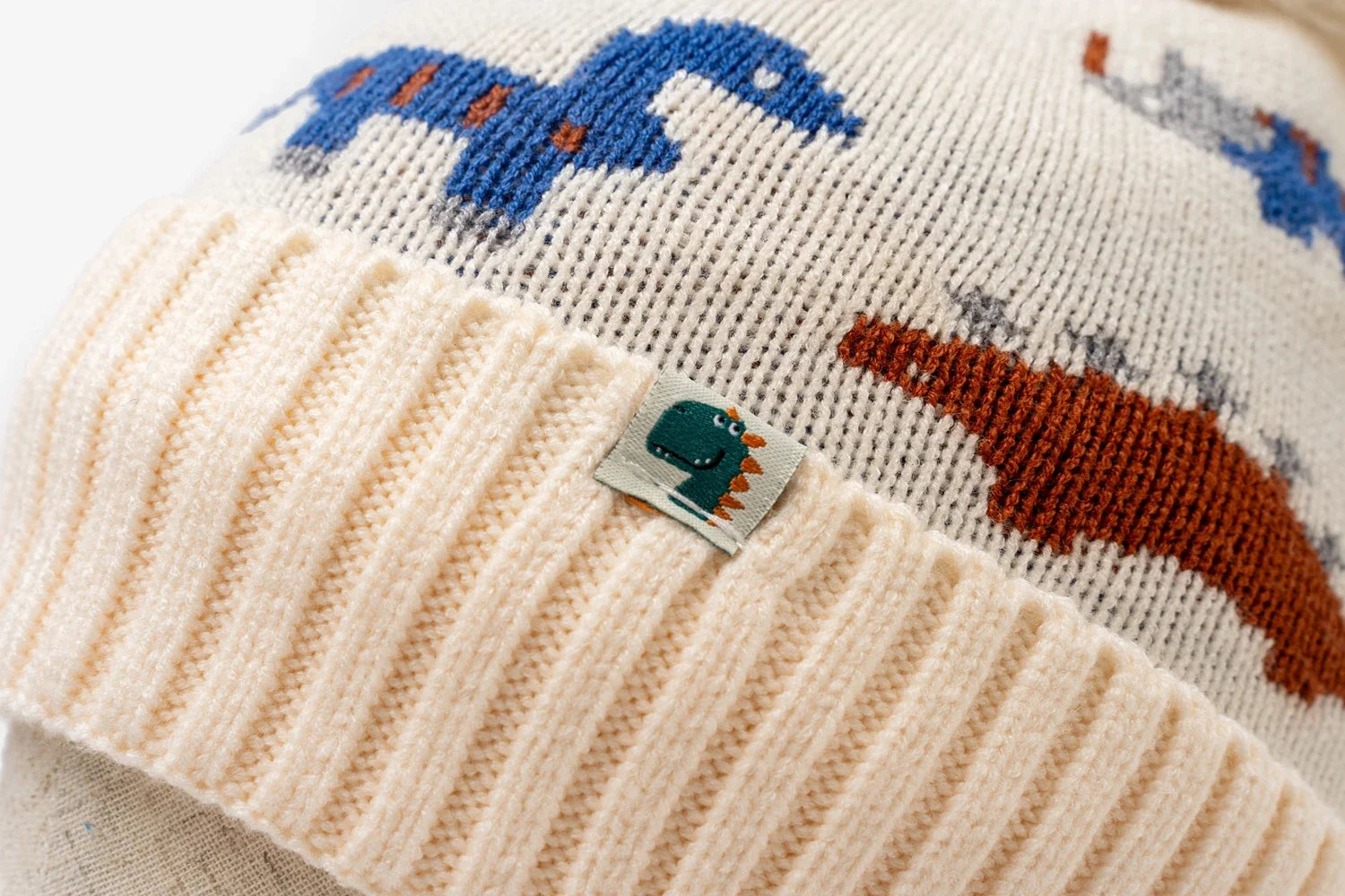Kids Winter Lei Feng Hat – Warm Cotton Knit Ear-Protection Hat with Animal Prints (4–6 Years, Unisex)